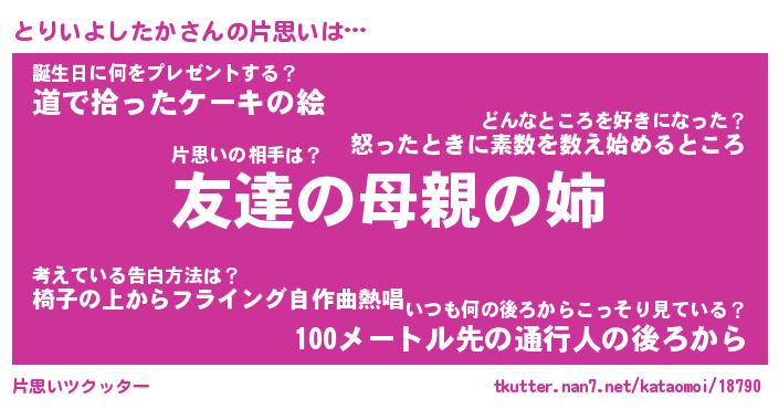 | 胡散臭い通販商品みたいなあだ名 | 『億万長者になれるブレスレット…その名も「とりいよしたか」』 |