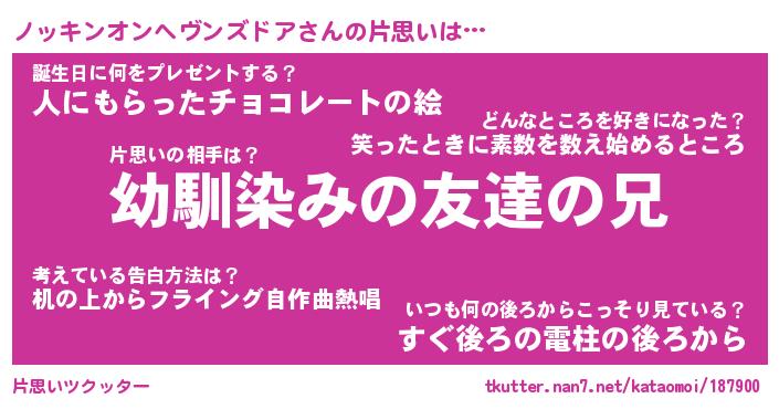 ノッキンオンヘヴンズドアさんの片思いをツクッター!