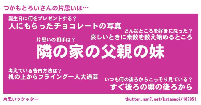 | っっっっっっっw …「あべせいた」 | 3月04日 01:50 |