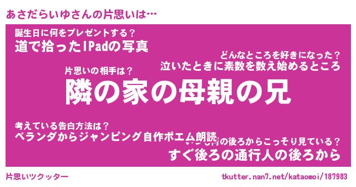 | 胡散臭い通販商品みたいなあだ名 | 『必ず成功するブレスレット…その名も「あさだらいゆ」』 |