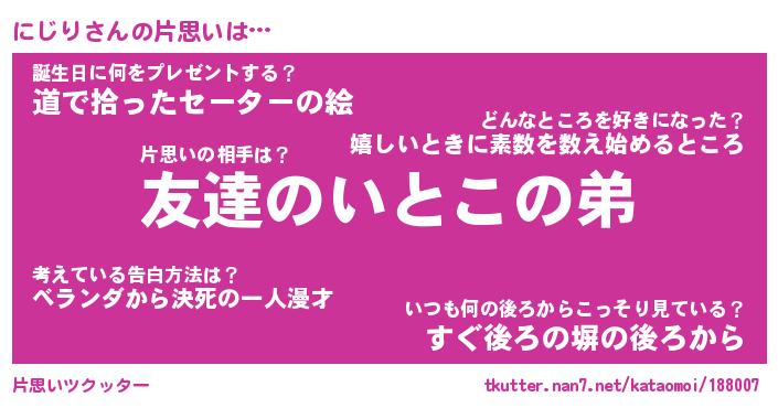 ヘコむあだ名 | 『にじもー』『豆乳』『にじぷりん』 |
