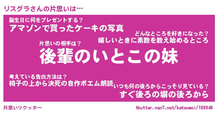 | ヘコむあだ名 | 『リスもー』『なまこ酢』『リスを』 |