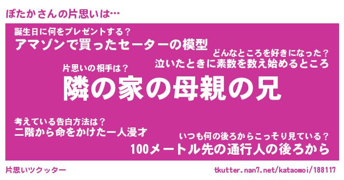 | 男性向けラノベタイトル風あだ名 | 『ぼたかの憂鬱』 |