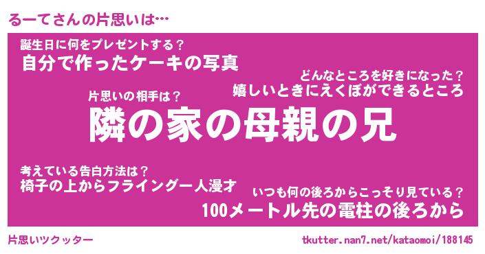| ヘコむあだ名 | 『るーにー』『なまこ酢』『るーを』 |