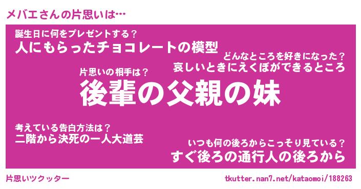 | ファンタジー風あだ名 | 『メバフェル』『エターナルメバエー』 |