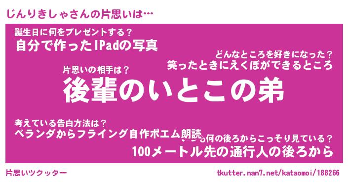 | ヘコむあだ名 | 『じんにゅー』『つくし』 |