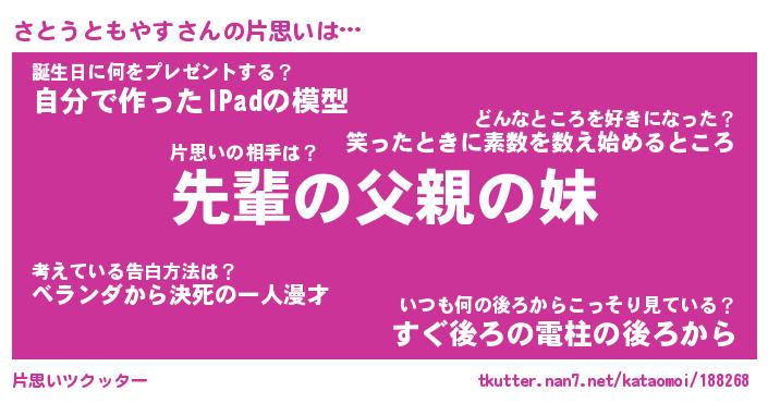| 胡散臭い通販商品みたいなあだ名 | 『モテモテ間違いなし水晶球…その名も「さとうともやす」』 |