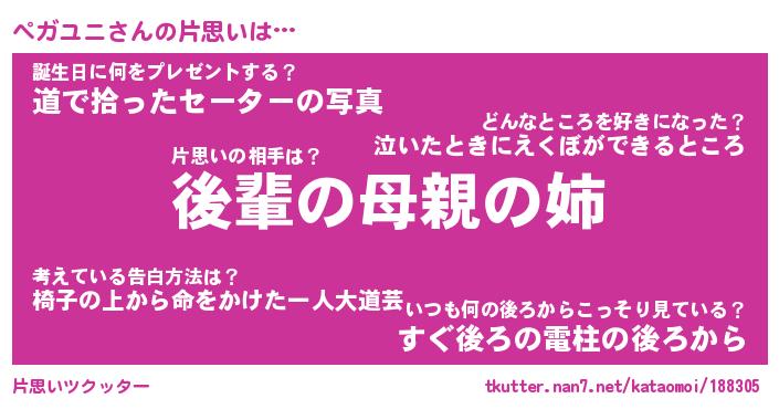 | 意味不明あだ名 | 『ペロリンペガユニ』『永久保存ペガユニ』 |