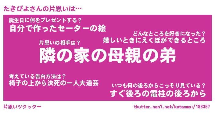 | ヘコむあだ名 | 『たきにー』『豆乳』『たきっちょ』 |