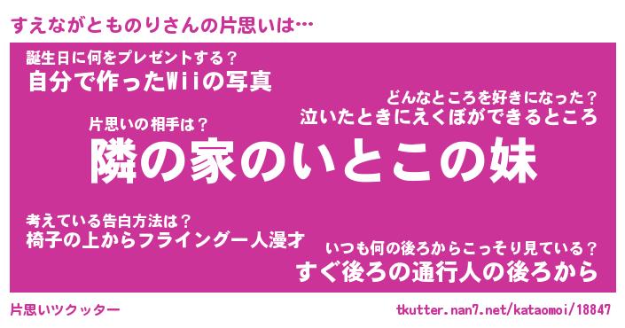 | 胡散臭い通販商品みたいなあだ名 | 『モテモテ間違いなし霊験あらたかなお札…その名も「すえながとものり」』 |
