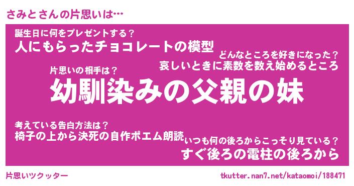| 意味不明あだ名 | 『ペロリンさみと』『さみとフォーエバー』 |