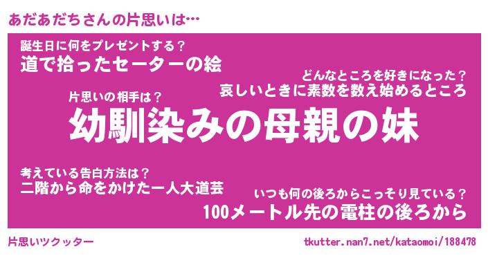 | ヘコむあだ名 | 『あだにー』『牛乳』『あだお』 |