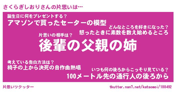 | 意味不明あだ名 | 『ペロリンさくらぎしおり』 |