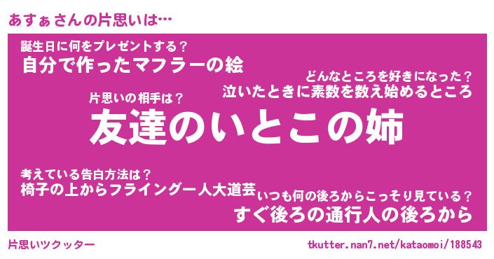 | ヘコむあだ名 | 『あすにゅー』『つくし』『あすを』 |
