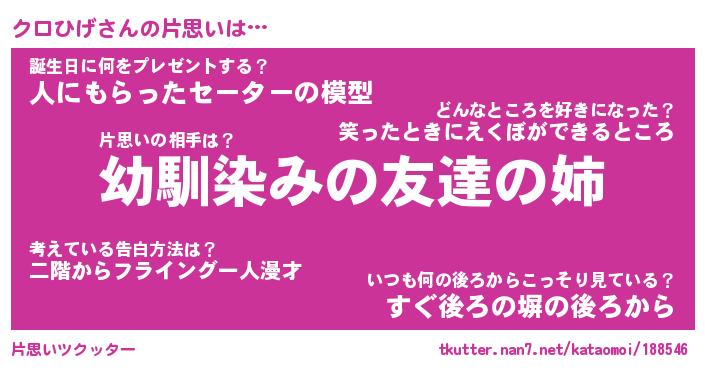 | 意味不明あだ名 | 『ペロリンクロひげ』『永久保存クロひげ』 |