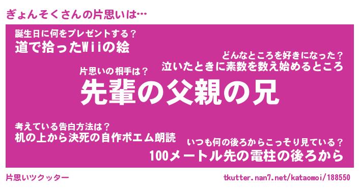 | 胡散臭い通販商品みたいなあだ名 | 『モテモテ間違いなし水晶球…その名も「ぎょんそく」』 |