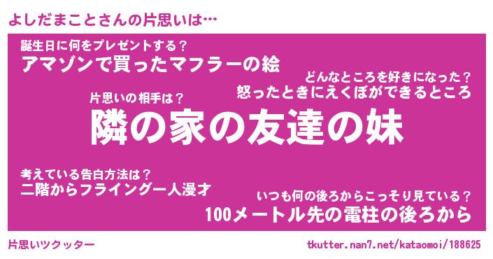 | 男性向けラノベタイトル風あだ名 | 『よしだまことの憂鬱』 |