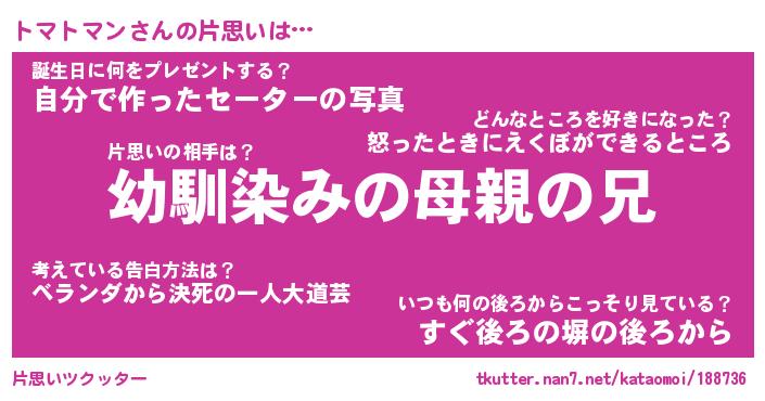 | 2回繰り返すあだ名 | 『トマトマ』『トトママ』『いらいら』 |
