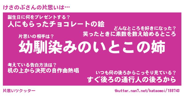 | ヘコむあだ名 | 『けさもー』『豆乳』『けさお』 |