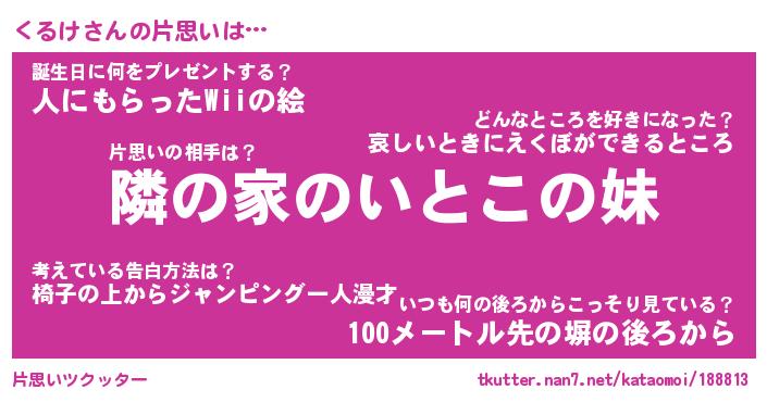 | ヘコむあだ名 | 『くるにゅー』『つくし』『くる太郎』 |