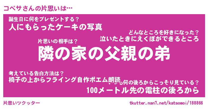 | ヘコむあだ名 | 『コペにゅー』『酢こんぶ』 |