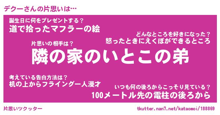 | 男性向けラノベタイトル風あだ名 | 『デクーの憂鬱』 |