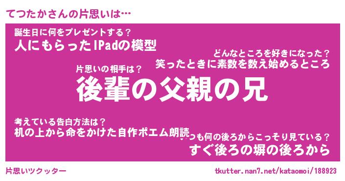 | 意味不明あだ名 | 『ペロリンてつたか』『永久保存てつたか』 |