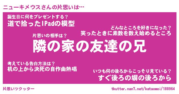 | 男性向けラノベタイトル風あだ名 | 『ニューキメウスの憂鬱』 |