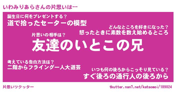 | ヘコむあだ名 | 『いわもー』『豆乳』『いわぷりん』 |