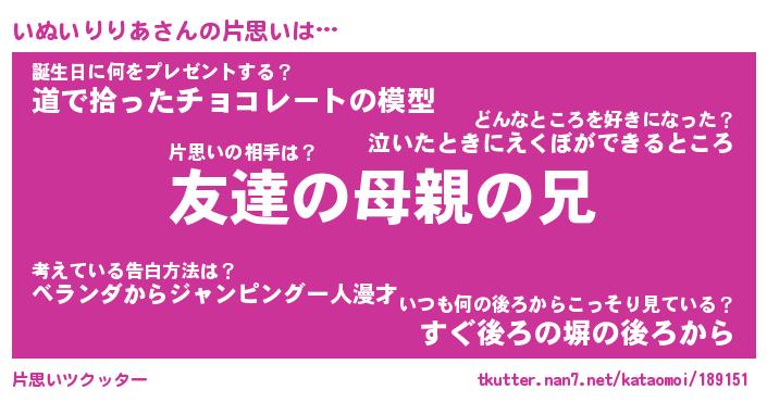 | 伝説のあだ名 | 『封印されし竜騎士いぬいりりあ』 |