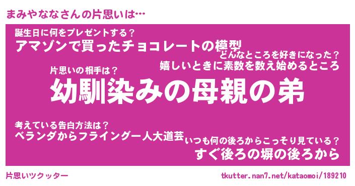 | 胡散臭い通販商品みたいなあだ名 | 『必ず成功するブレスレット…その名も「まみやなな」』 |