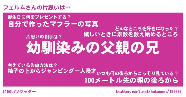 | 男性向けラノベタイトル風あだ名 | 『フェルムの憂鬱』 |