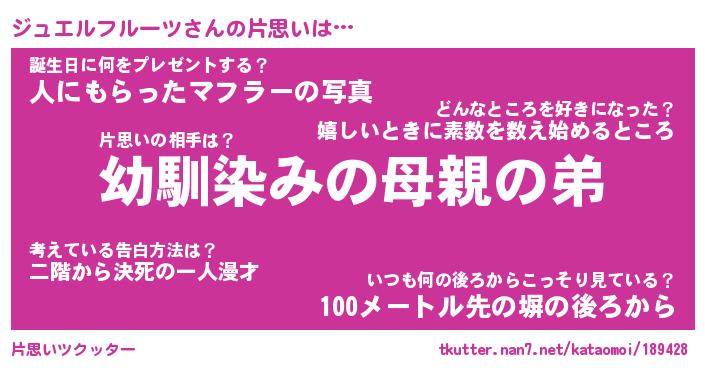 | 男性向けラノベタイトル風あだ名 | 『ジュエルフルーツの憂鬱』 |