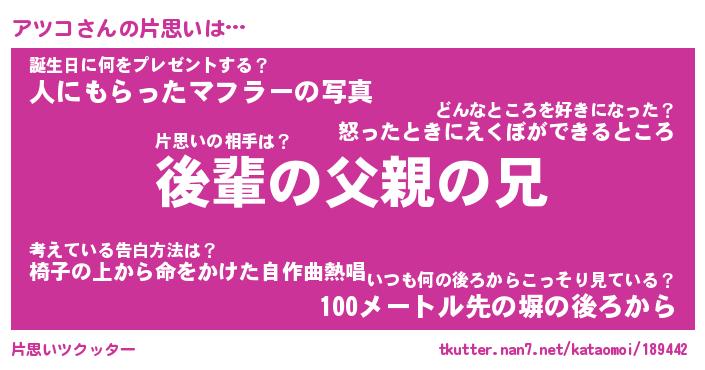 | 意味不明あだ名 | 『ペロリンアツコ』『アツコフォーエバー』 |