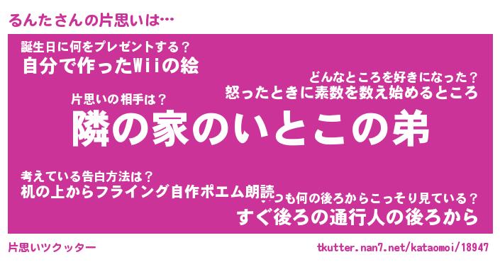 | ヘコむあだ名 | 『るんにゅー』『つくし』『るんを』 |