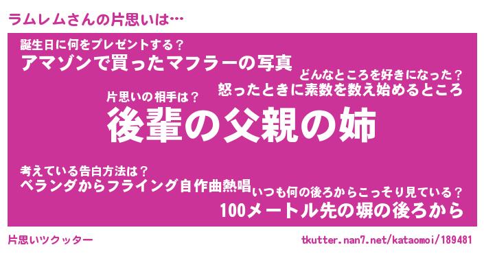| 意味不明あだ名 | 『ペロリンラムレム』『永久保存ラムレム』 |
