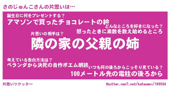 | 男性向けラノベタイトル風あだ名 | 『さのじゅんこの憂鬱』 |
