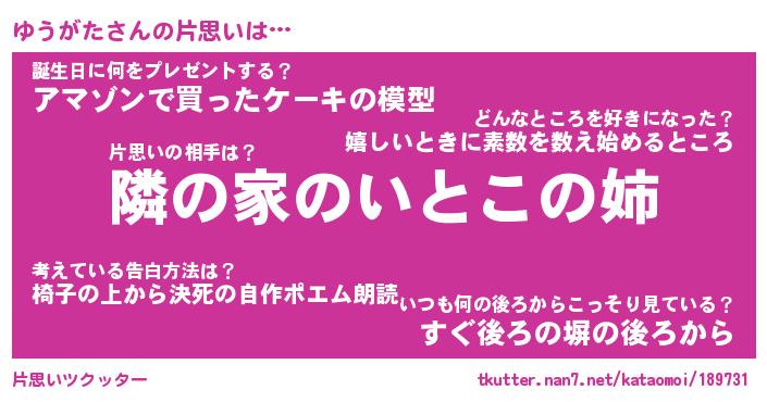 | 意味不明あだ名 | 『ペロリンゆうがた』『永久保存ゆうがた』 |