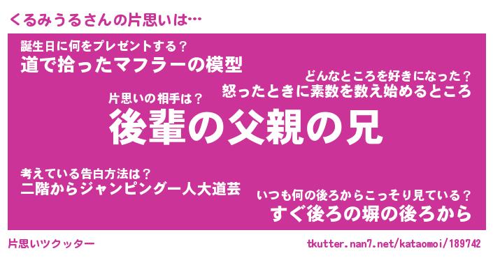 | ヘコむあだ名 | 『くるふぇ~』『豆乳』『くるっちょ』 |