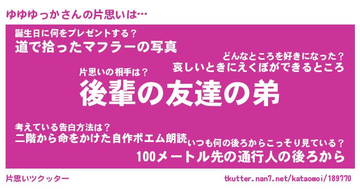 | ファンタジー風あだ名 | 『ユユフェル』『エターナルユユユッカー』 |