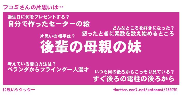 | 意味不明あだ名 | 『ペロリンフユミ』『フユミフォーエバー』 |