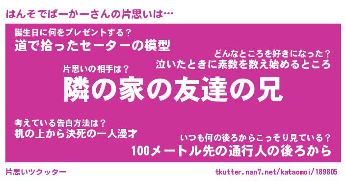 | ポケモン風あだ名 | 『ハンチュウ』『ハンソダネ』 |