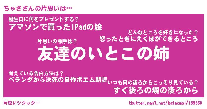 | ヘコむあだ名 | 『ちゃにゅー』『豆乳』『ちゃっ子』 |