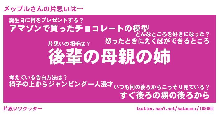 | 意味不明あだ名 | 『ペロリンメップル』『永久保存メップル』 |