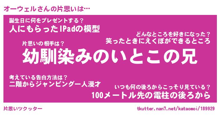 | 男性向けラノベタイトル風あだ名 | 『オーウェルの憂鬱』 |