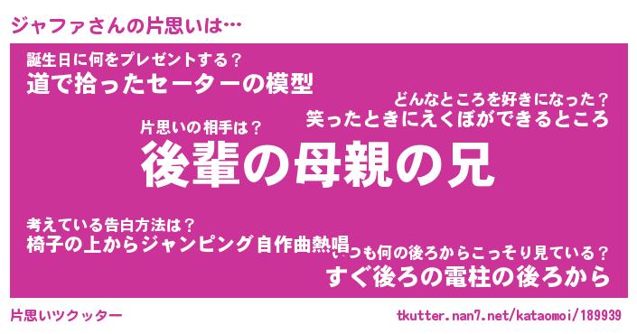 | 意味不明あだ名 | 『ペロリンジャファ』『永久保存ジャファ』 |