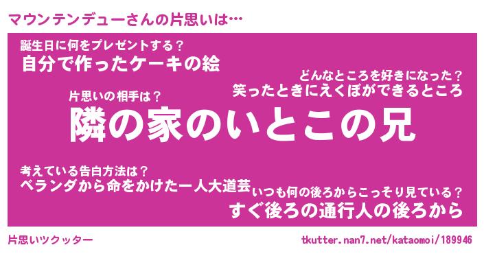 | ヘコむあだ名 | 『マウにゅー』『豆乳』『マウっちょ』 |