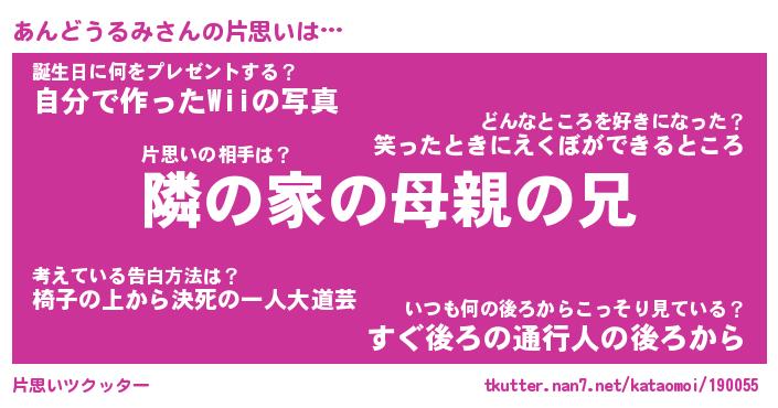 | ヘコむあだ名 | 『あんにー』『豆乳』『あん太郎』 |
