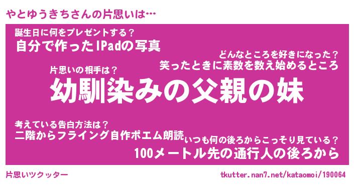 | ヒーロー風カッコイイあだ名 | 『スーパーヤトユウキチ』『天弓騎士ヤト』 |
