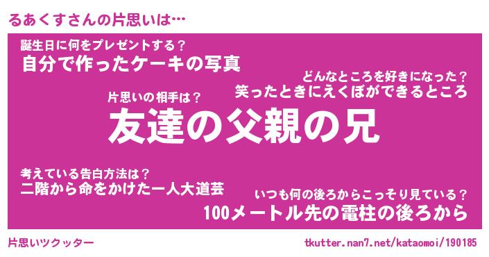 | ヘコむあだ名 | 『るあふぇ~』『酢こんぶ』『るあを』 |